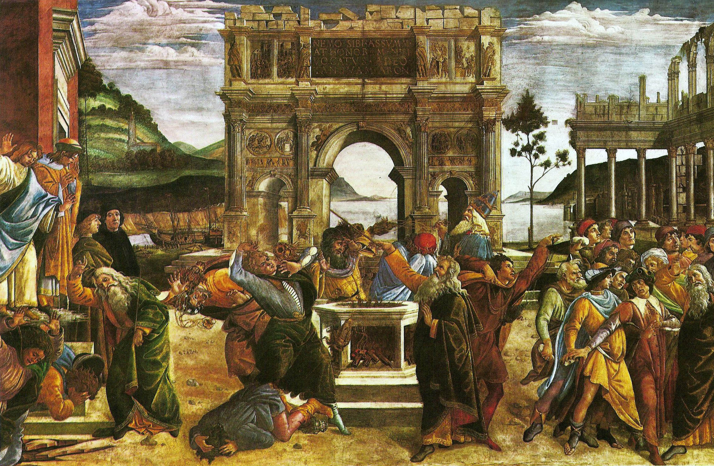 Sandro Botticelli - The Punishment of Korah and the Stoning of Moses and Aaron.jpg